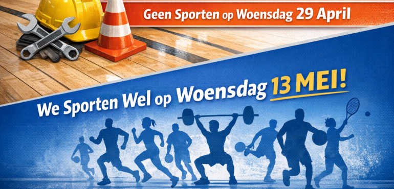 In verband met onderhoudswerkzaamheden aan de zalen van Sport+ komt het sporten op woensdagavond 29 april te vervallen. Gelukkig is er een alternatief moment ingepland: we gaan woensdagavond 13 mei alsnog sporten. Dit is een uitzondering, aangezien er normaal gesproken niet gesport wordt in verband met Hemelvaart, maar dit keer dus wél. We hopen jullie allemaal te zien op de … Meer lezen over Wijziging sportdata – let op!